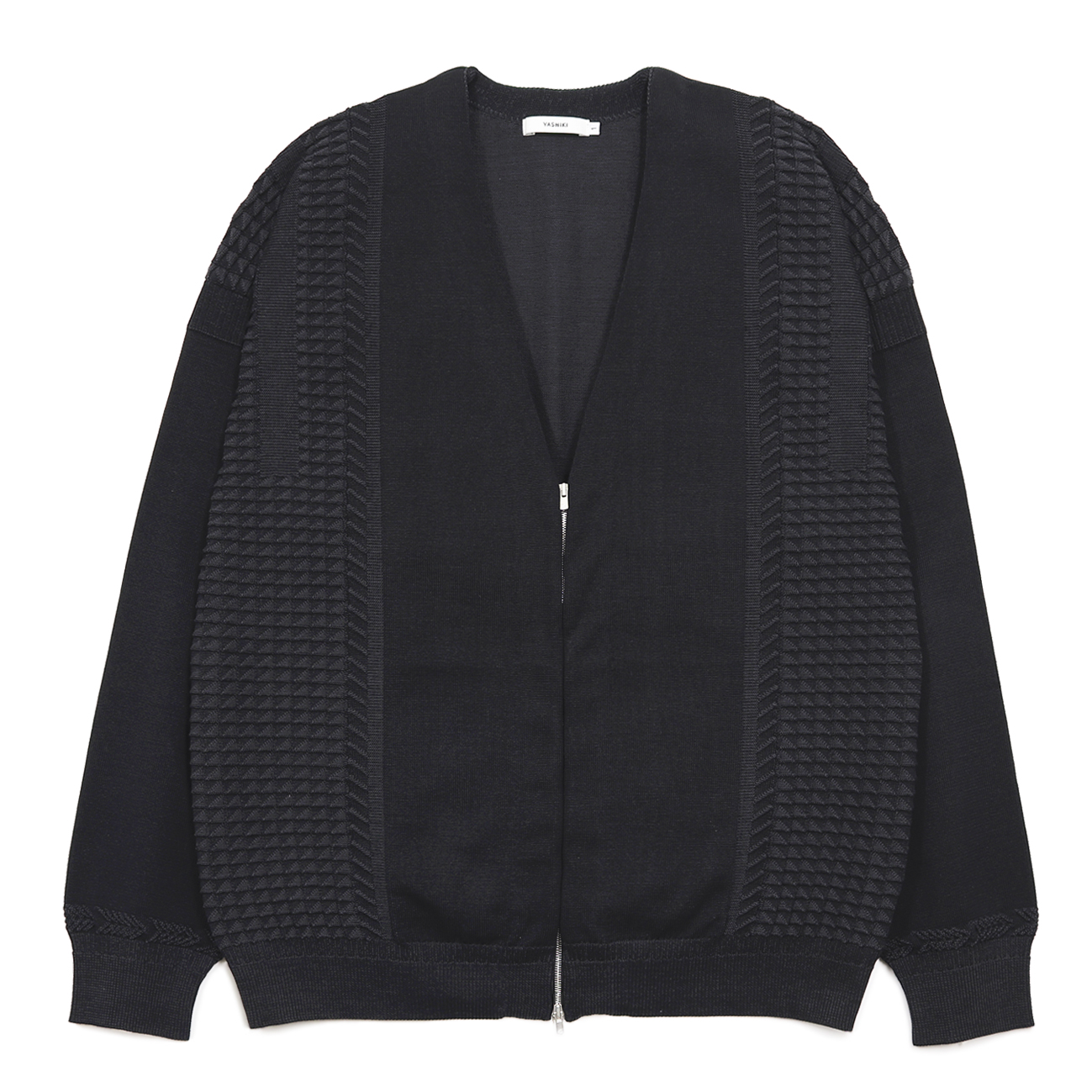80番手の細い糸を8本で12ゲージに仕上げた薄手ながらもしっかりとした編み地になります。