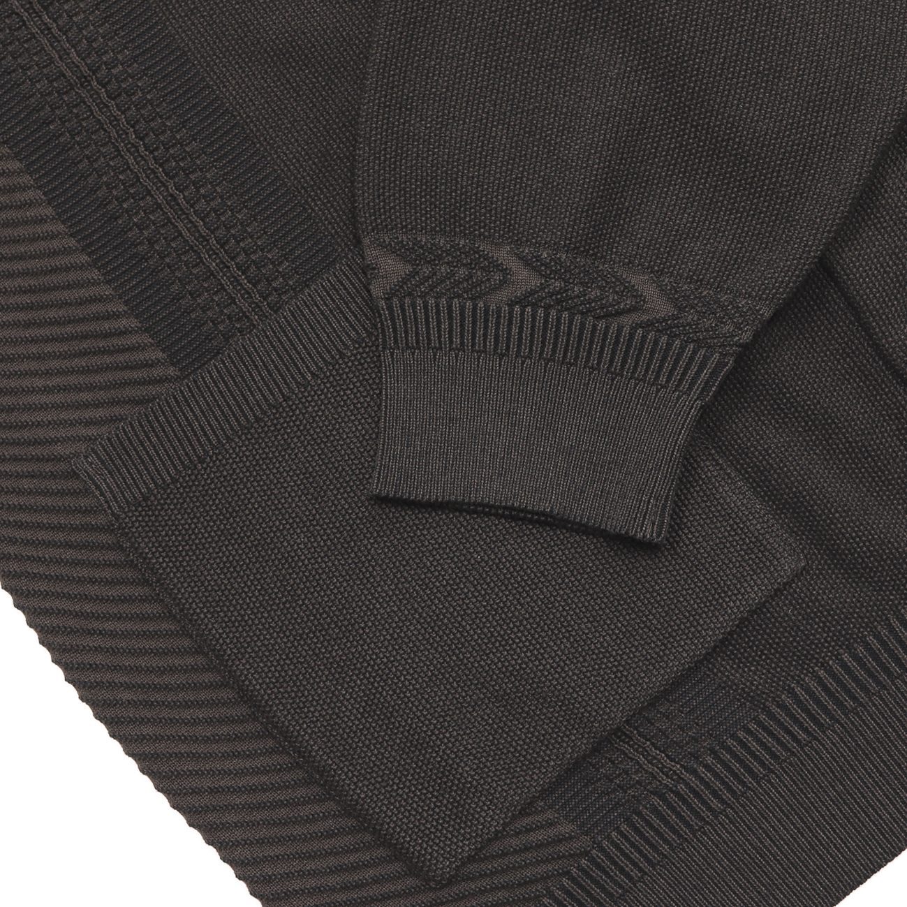 身頃中央と袖の鹿の子編みの細かな凹凸で冬の終わりのザラついた細かな氷の様な雪を表し、身頃脇の斜線柄で春のやわらかな雨を