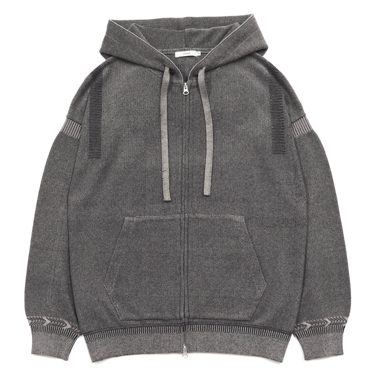 鹿の子編みの細かな凹凸は冬の終わりのザラついた細かな氷の様な雪を表し、2色の糸色は春の訪れとともに雪がとけて土が顔を出す