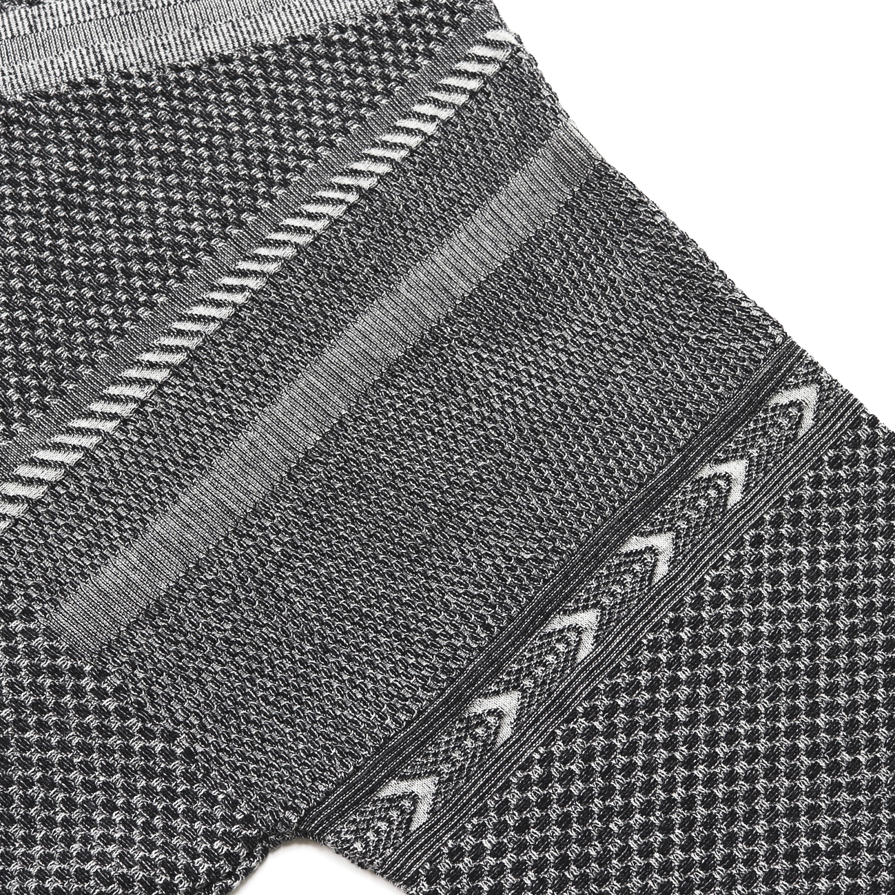 プレーティング編みと言われる表目側と裏目側で異なる糸を編む技法を使用し、表と裏で糸の色を変えて、2色で編むことで奥行きのある表情に仕上げました。