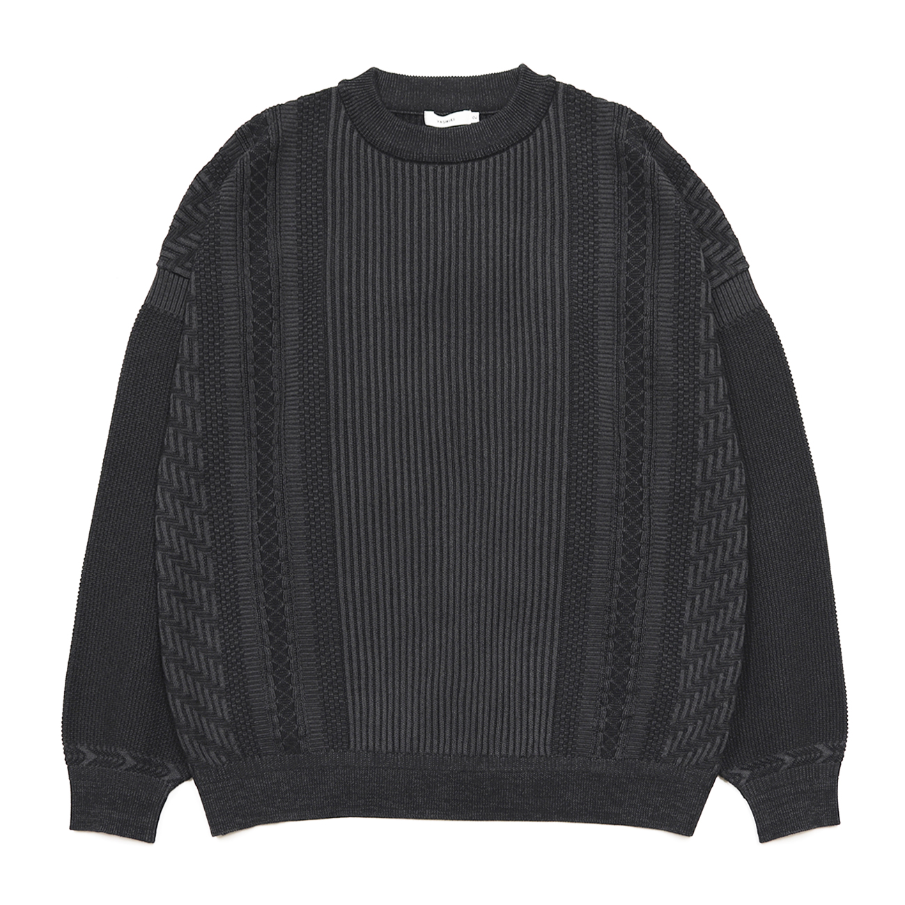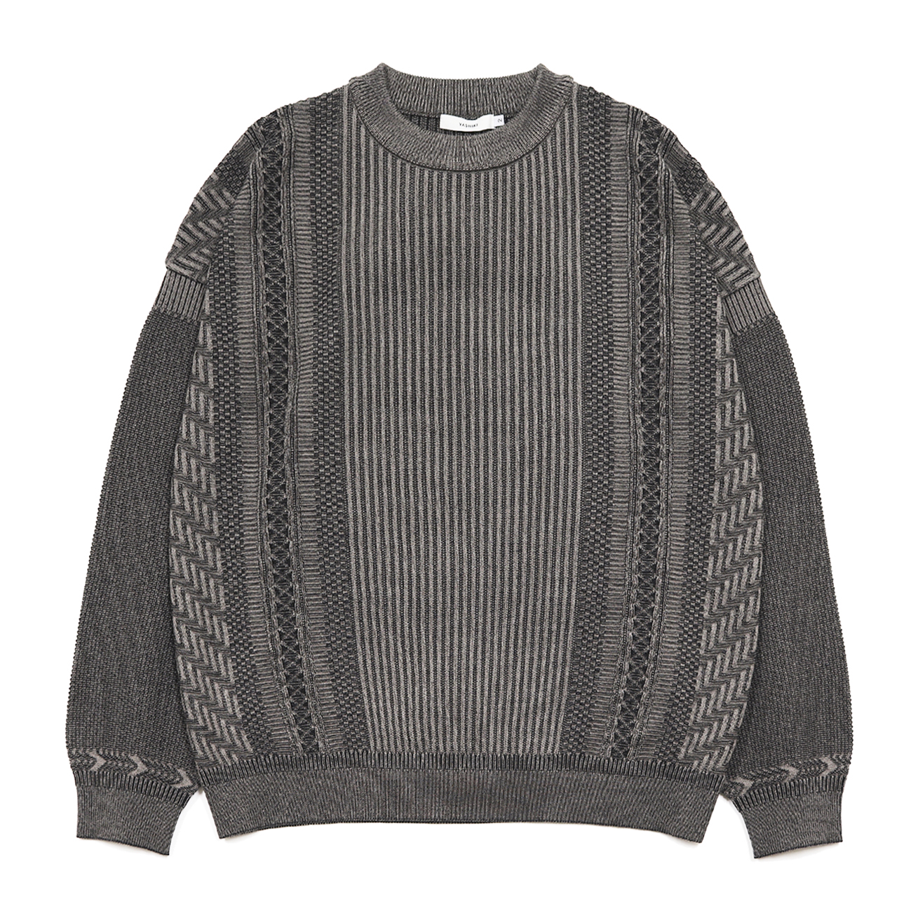 流れる手取川を表しています。袖の鹿の子編みの細かな凹凸で冬の終わりのザラついた細かな氷の様な雪を表しています。